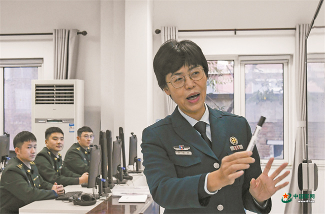 白曉穎在給官兵講授網(wǎng)絡(luò)安全防護知識。