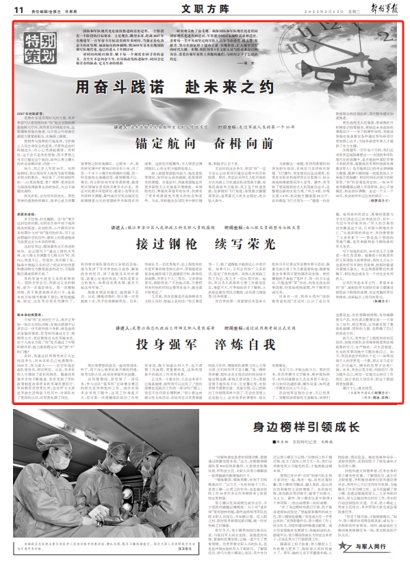 不知“你”此刻在忙什么,或許正參加一場實兵對抗訓練,在炮火硝煙中記錄官兵一往無前的戰(zhàn)斗身影,或是奮戰(zhàn)在電腦屏幕前,思考如何通過文字、視頻等方式,更好展現(xiàn)官兵的英雄本色。在個人成長方面,“你”是否通過了中級職稱評審,能力素質跨過從“初”到“中”的門檻?