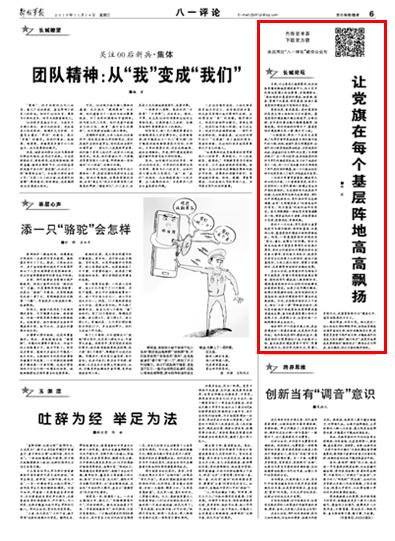 日前,習(xí)主席在上海考察時(shí),強(qiáng)調(diào)指出,“要加強(qiáng)黨的基層組織建設(shè),把資源、服務(wù)、管理下沉基層、做實(shí)基層,把每個(gè)基層黨組織建設(shè)成為堅(jiān)強(qiáng)戰(zhàn)斗堡壘。”黨的基層組織是黨全部工作和戰(zhàn)斗力的基礎(chǔ)。基層黨組織建設(shè)能不能全面進(jìn)步、全面過(guò)硬,關(guān)乎黨的事業(yè)能不能根基穩(wěn)固、持續(xù)發(fā)展。任何時(shí)候任何情況下,基層黨組織建設(shè)都不是小事,都不可小視。請(qǐng)關(guān)注今天出版的《解放軍報(bào)》帶來(lái)的報(bào)道——