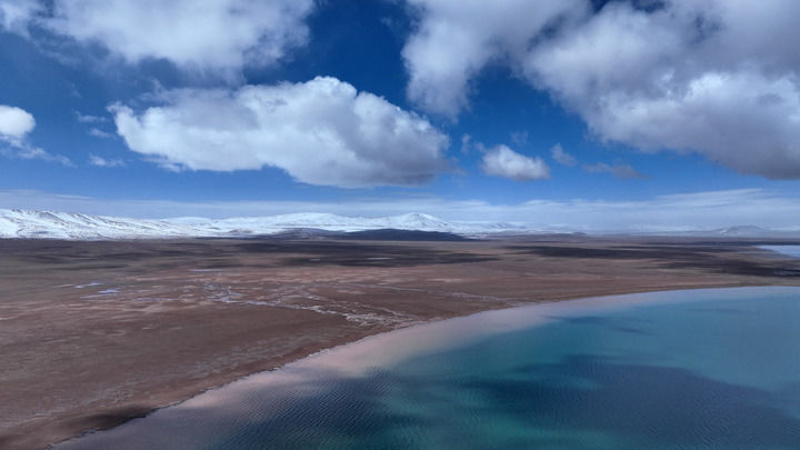 青海三江源國(guó)家公園長(zhǎng)江源園區(qū)可可西里卓乃湖一角(2023年6月17日攝,無(wú)人機(jī)照片)。新華社記者 張宏祥 攝