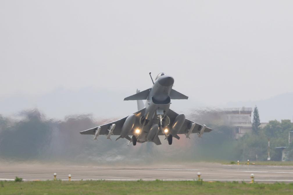 2023年4月8日,東部戰(zhàn)區(qū)圓滿(mǎn)完成環(huán)臺(tái)島戰(zhàn)備警巡和“聯(lián)合利劍”演習(xí)。這是殲擊機(jī)掛彈起飛。新華社發(fā)(王紫簫 攝)
