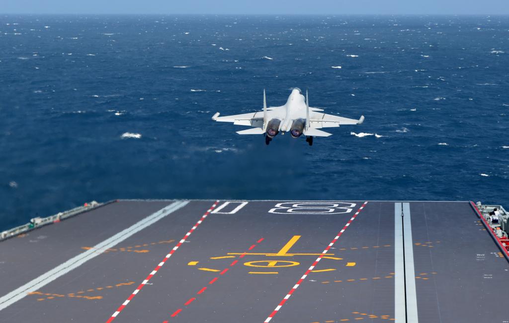 海軍福建艦開(kāi)展入列后首次海上實(shí)兵訓(xùn)練期間,殲-15DT艦載機(jī)彈射起飛(資料照片)。新華社發(fā)(高澤明 攝)