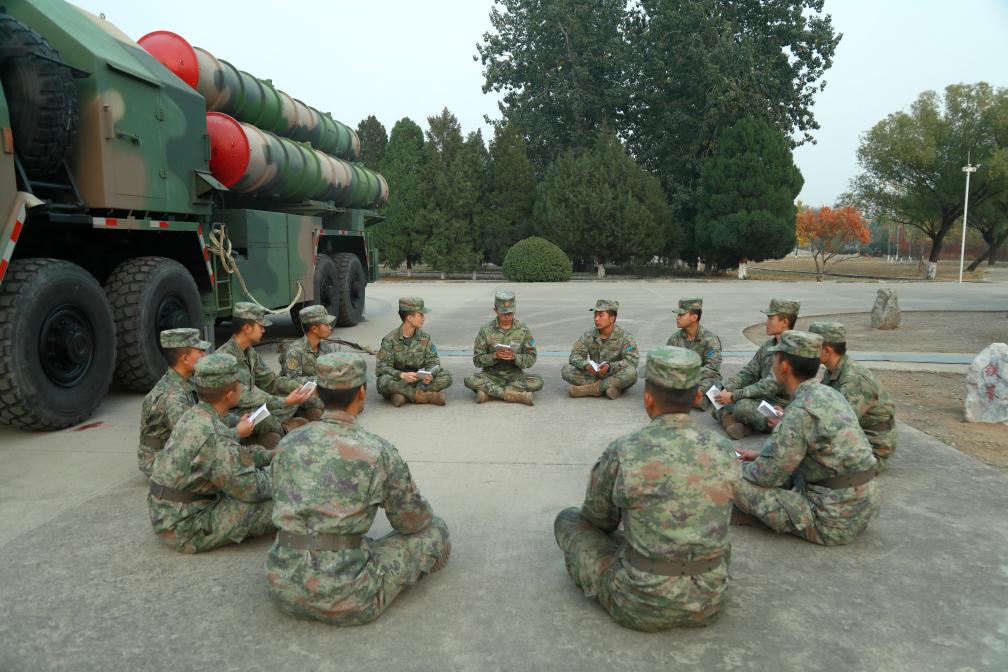 中部戰(zhàn)區(qū)空軍“模范地空導(dǎo)彈營(yíng)”開(kāi)展“鳴鏑講堂”交流活動(dòng)(2022年10月25日攝)。新華社發(fā)(趙勝之 攝)