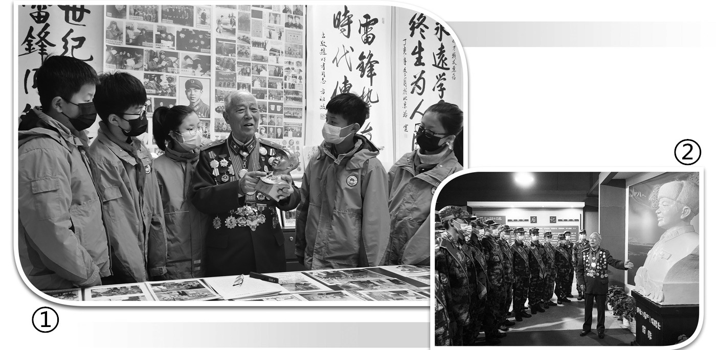 圖②:在大金山國防園“雷鋒文化館”內(nèi),趙明才向即將入伍的新兵宣講雷鋒精神。受訪者供圖