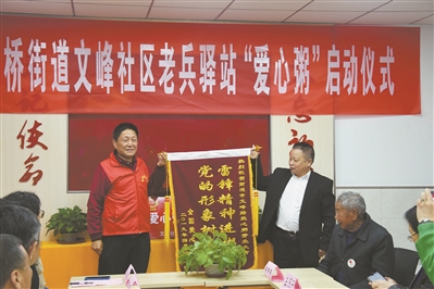 張志光(左)在老兵驛站“愛心粥”啟動儀式上。王坤乾攝