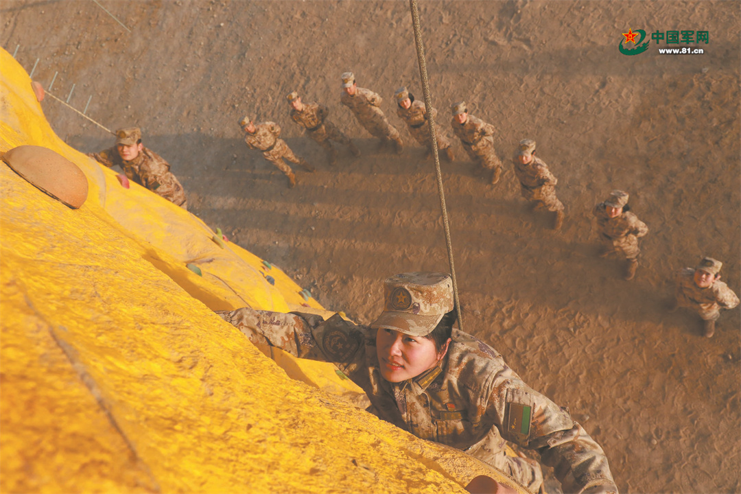 賈春玲進(jìn)行攀登訓(xùn)練。王文強(qiáng)攝