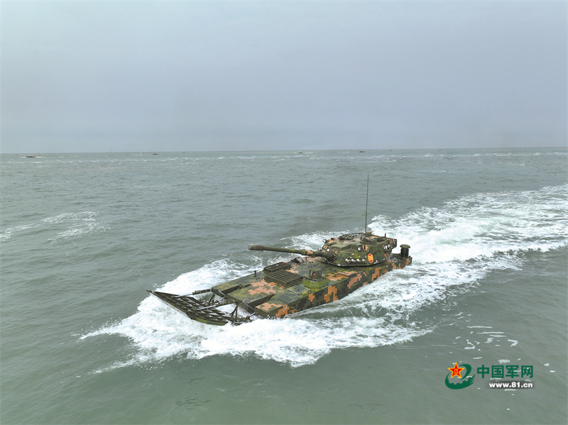 陰翳的云層鋪滿天空,擠壓著波濤暗涌的海面。海浪隨風涌動,拍打著水中破浪行進的兩棲突擊車。