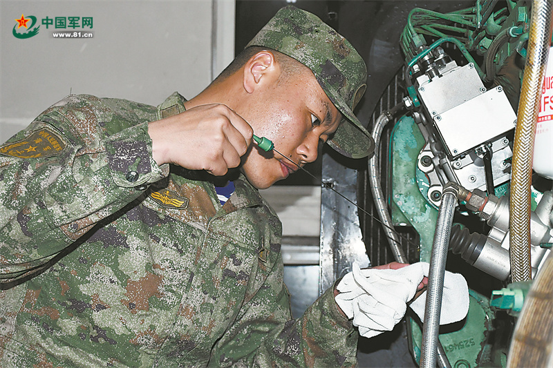 二級上士趙龍濤一身腱子肉,干活時總是沖在前;一級上士楊萬寧學習專業(yè)廢寢忘食,經(jīng)常是眼睛酸澀也不肯離開戰(zhàn)位;二級上士李欣陽維修裝備有一手,不修好裝備不睡覺……