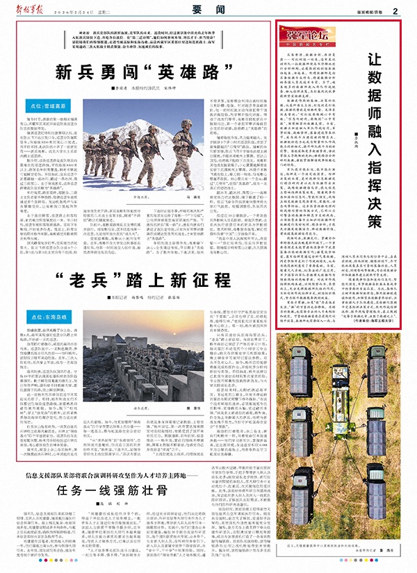 采集整理、數(shù)據(jù)分析、推演復(fù)盤……對抗訓(xùn)練一結(jié)束,海軍某試訓(xùn)部隊一批數(shù)據(jù)師便馬不停蹄地進行分析研判,讓獲取到的訓(xùn)練數(shù)據(jù)動起來、活起來。所謂數(shù)據(jù)師是指具備數(shù)據(jù)專業(yè)特長、精通數(shù)據(jù)分析的參謀人員或技術(shù)專家。當(dāng)下,越來越多的數(shù)據(jù)師嵌入部隊作戰(zhàn)鏈條、融入指揮決策,為打贏現(xiàn)代戰(zhàn)爭提供堅實數(shù)據(jù)支撐。