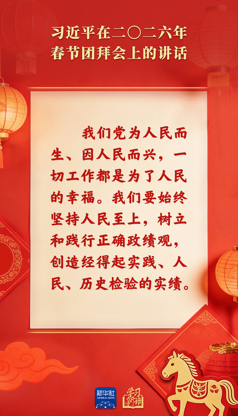 辭舊歲,賀新春。中共中央、國(guó)務(wù)院14日上午在人民大會(huì)堂舉行2026年春節(jié)團(tuán)拜會(huì)。習(xí)近平總書記發(fā)表講話,代表黨中央和國(guó)務(wù)院,向全國(guó)各族人民,向香港特別行政區(qū)同胞、澳門特別行政區(qū)同胞、臺(tái)灣同胞和海外僑胞拜年。