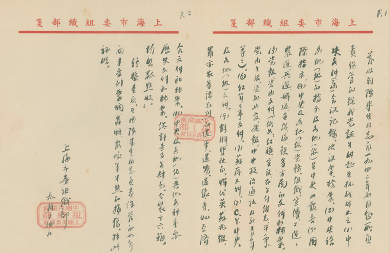 珍藏在上海市檔案館的《中共上海市委組織部給陳來生的證明信》中寫明,這批“從我黨誕生時(shí)起至抗戰(zhàn)時(shí)止”的檔案保存完好,“未受到霉?fàn)€、蟲蛀、鼠咬等半點(diǎn)的損傷”。證明信以毛筆寫就,短短17行字,雖是兩頁(yè)輕薄紙張,卻分量千鈞,見證了中央早期檔案的回歸。