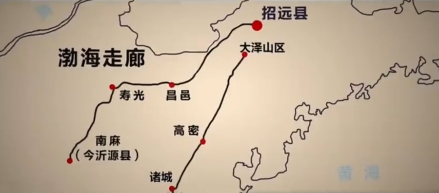 受日偽頑封鎖和“掃蕩”制約,不同時(shí)期的運(yùn)金路線差異很大。1939年至1943年,運(yùn)金主要是通過“渤海走廊”,即從膠東根據(jù)地出發(fā),經(jīng)昌邑、濰縣、壽光三縣北部,向南穿過膠濟(jì)鐵路進(jìn)入魯中區(qū),然后到達(dá)濱海區(qū)山東分局駐地。這條路線巧妙地避開了日偽據(jù)點(diǎn)密布的膠濟(jì)鐵路東段,敵人控制相對薄弱,便于運(yùn)金藏身?!安澈W呃取彪m然相對安全,但路途遙遠(yuǎn),從膠東區(qū)到濱海區(qū)繞了一個(gè)大圈子。1943年7月,在山東軍區(qū)的統(tǒng)一指揮下,魯中軍區(qū)和濱海軍區(qū)部隊(duì),分別挺進(jìn)諸(城)日(照)莒(縣)一帶山區(qū),由此打通了魯中區(qū)和濱海區(qū)的聯(lián)系,“濱海通道”應(yīng)運(yùn)而生。1944年秋后,運(yùn)金路線由“渤海走廊”改為“濱海通道”,即從膠縣、高密境內(nèi)越過膠濟(jì)鐵路,經(jīng)濱海區(qū)諸城等縣直達(dá)山東分局所在地。“濱海通道”打通后,運(yùn)金距離大大縮短,從膠東區(qū)到山東分局駐地,只需兩天即可到達(dá)。