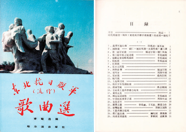 ▲東北抗日聯(lián)軍老戰(zhàn)士李敏選編的《東北抗日聯(lián)軍歌曲選》?!∽髡吖﹫D