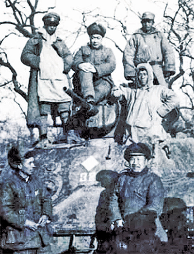 ▲陳毅等我軍指戰(zhàn)員在魯南戰(zhàn)役中繳獲的美制坦克前留影。