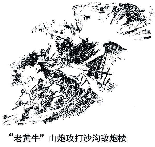 戰(zhàn)斗持續(xù)到23日上午,1團已進入鎮(zhèn)內(nèi),偽軍依托建筑物負(fù)隅頑抗,拒絕投降。為盡早結(jié)束戰(zhàn)斗,防止敵人增援,粟裕果斷命令緊急調(diào)“老黃?!敝辽硿锨熬€。“老黃?!逼鋵嵤且婚T“一三”式75毫米山炮,它是1941年曹甸戰(zhàn)役中從韓德勤手里繳來的,由于它體型大、威力大,一直被新四軍視為“秘密武器”?!袄宵S?!币话l(fā)威,效果立見,一炮過后,在東炮樓頑抗的“鋼盔連”頓時亂作一團,偽軍紛紛棄炮樓逃跑,我軍隨即繳械拿下東炮樓。沒有了炮樓的掩護,沙溝鎮(zhèn)內(nèi)的偽軍頓時失去斗志,紛紛繳械投降。