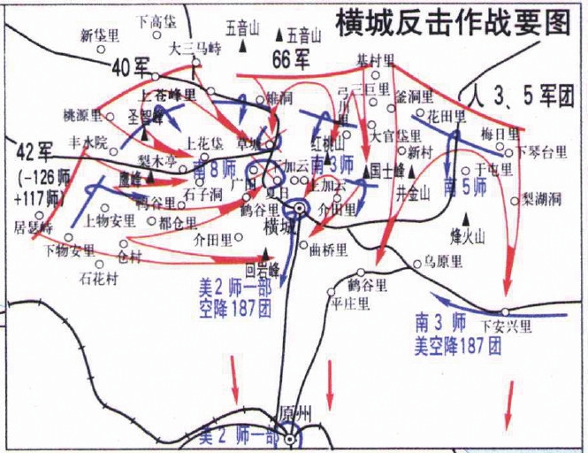 2月11日傍晚,在經(jīng)過一段時(shí)間火力急襲后,志愿軍各部向敵軍陣地發(fā)起進(jìn)攻。第42軍從橫城西北方向進(jìn)攻,快速切斷城外南朝鮮軍第8師的退路,并以一部兵力前出至橫城以南,準(zhǔn)備隨時(shí)阻擊由原州方向前來支援的敵軍。第66軍從橫城東北方向進(jìn)攻,從戰(zhàn)斗軌跡上看,剛好和西側(cè)的第42軍形成“合攏”,把橫城和附近的南朝鮮部隊(duì)徹底包圍。第40軍從中路進(jìn)攻,以快速、凌厲的攻勢(shì),把被圍之?dāng)撤指畛稍S多個(gè)孤立的部分。戰(zhàn)至12日凌晨,橫城以北的南朝鮮部隊(duì)3個(gè)團(tuán)已全部被志愿軍分割包圍。
