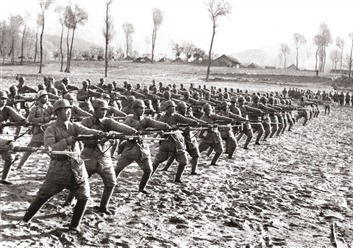 我軍將士在戰(zhàn)斗間隙的訓(xùn)練、行軍乃至日常生活,也是《晉察冀畫(huà)報(bào)》重要的報(bào)道內(nèi)容之一。例如,1943年5月出版的第3期《晉察冀畫(huà)報(bào)》,就刊登了雷燁的“冀東軍區(qū)子弟兵”系列新聞攝影作品。這些作品真實(shí)記錄了八路軍在古長(zhǎng)城內(nèi)外戰(zhàn)斗與生活的場(chǎng)景,包括“馳騁遼河、挺進(jìn)熱南”“冀東平原戰(zhàn)果之一部”“塞外的烽煙”“摧毀人圈”等4個(gè)版塊:長(zhǎng)城陣地警惕的士兵、峻嶺中穿行的隊(duì)伍、遼河岸邊學(xué)習(xí)的指戰(zhàn)員、攻克日偽據(jù)點(diǎn)后歡快的人群、刺殺訓(xùn)練中動(dòng)作整齊的將士……八路軍官兵昂揚(yáng)的精神、良好的風(fēng)貌,無(wú)不躍然紙上。