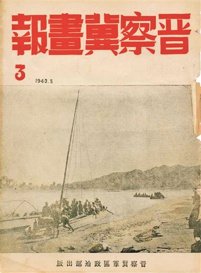 ▲1943年5月出版的第3期《晉察冀畫(huà)報(bào)》。該期以雷燁拍攝的《灤河曉渡》為封面?!≠Y料照片