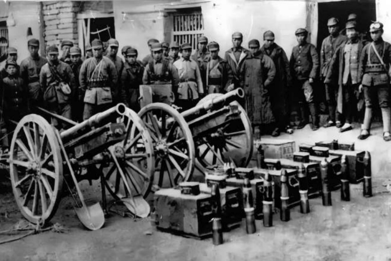 ▲1939年2月,八路軍129師386旅在香城固戰(zhàn)斗中繳獲的日軍裝備。