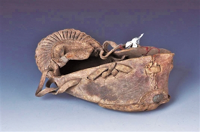 ▲東北抗聯(lián)官兵穿過的靰鞡?!≠Y料照片