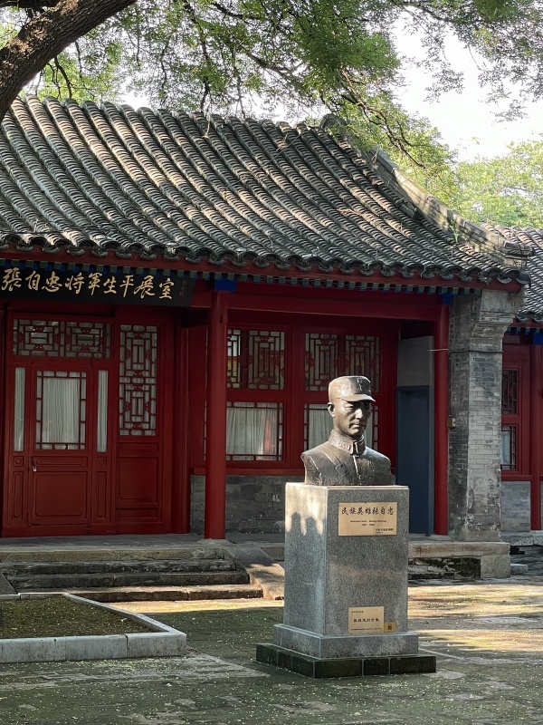 ▲這是位于北京市自忠小學內(nèi)的張自忠雕像(8月6日攝,手機照片)?!⌒氯A社記者陳鐘昊攝