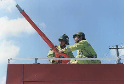 曹國華先指揮司機(jī)將消防車沿道路東西走向在上風(fēng)方向停好,然后迅速布置警戒,避免過往車輛出事故。布置妥當(dāng)后,又趕緊出水滅火。然而大火越燒越旺,并迅速向周邊蔓延,一支水槍根本無法控制住火勢,曹國華連忙跑到消防車右后側(cè),打開廂門,用水帶接口連接車泵出水,準(zhǔn)備接出第二支水槍滅火。正在這時,意外突然發(fā)生了。