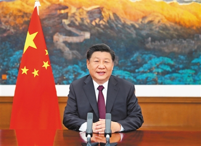 9月4日,國家主席習近平在2020年中國國際服務貿(mào)易交易會全球服務貿(mào)易峰會上致辭。新華社記者 鞠 鵬攝