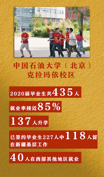 2020年7月7日,習近平給中國石油大學(北京)克拉瑪依校區(qū)118名畢業(yè)生回信,肯定了他們“奔赴新疆基層工作,立志同各族群眾一起奮斗,努力成為可堪大用、能擔重任的西部建設者”的人生選擇。