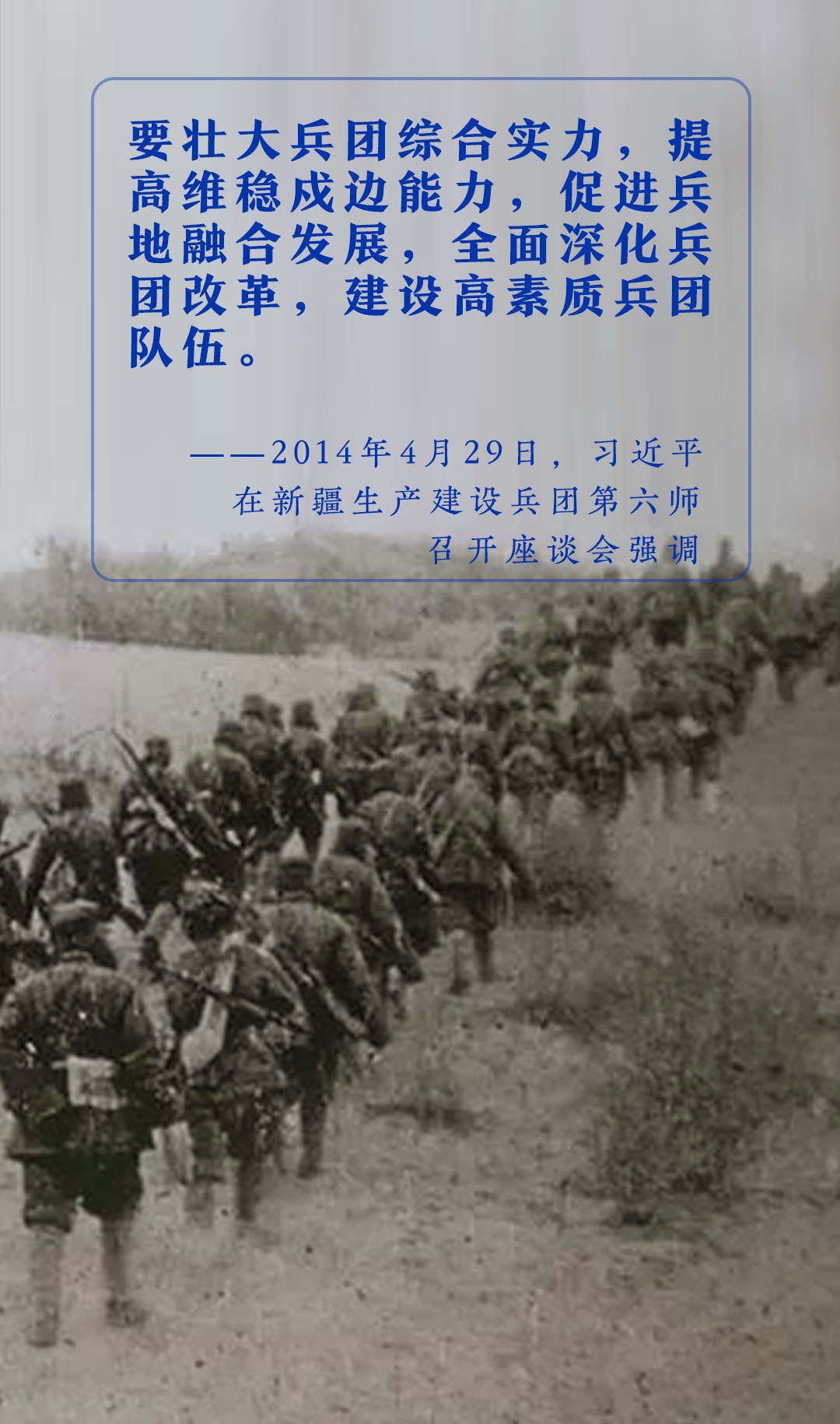 9月25日至26日,習近平總書記在第三次中央新疆工作座談會上強調,要踐行胡楊精神和兵團精神,激勵各級干部在新時代扎根邊疆、奉獻邊疆。