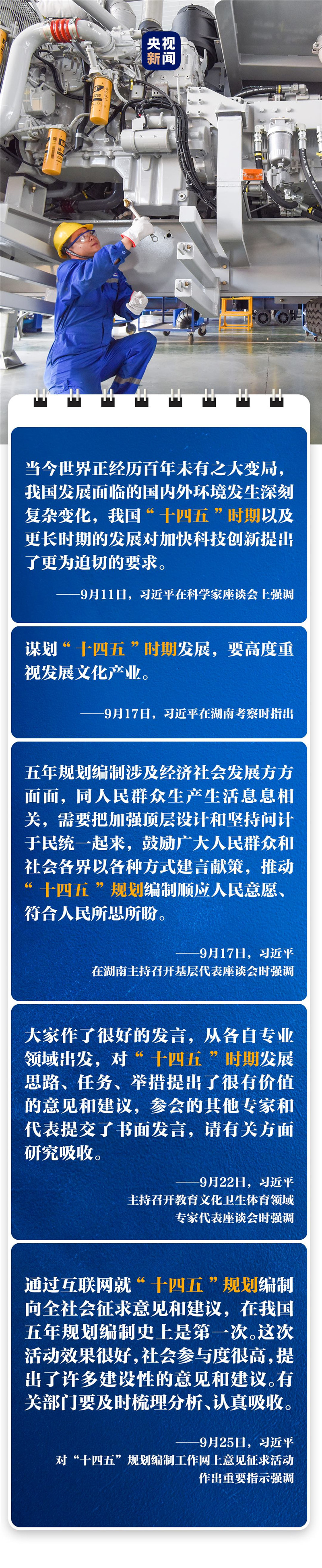 好的方針政策和發(fā)展規(guī)劃都應(yīng)該順應(yīng)人民意愿、符合人民所思所盼,從群眾中來、到群眾中去。為了編制好“十四五”規(guī)劃,這個(gè)月,習(xí)近平主持召開系列座談會(huì)、赴湖南考察調(diào)研,直接聽取社會(huì)各界意見建議。首次通過互聯(lián)網(wǎng)征求意見,收到網(wǎng)民建言超過101.8萬條。