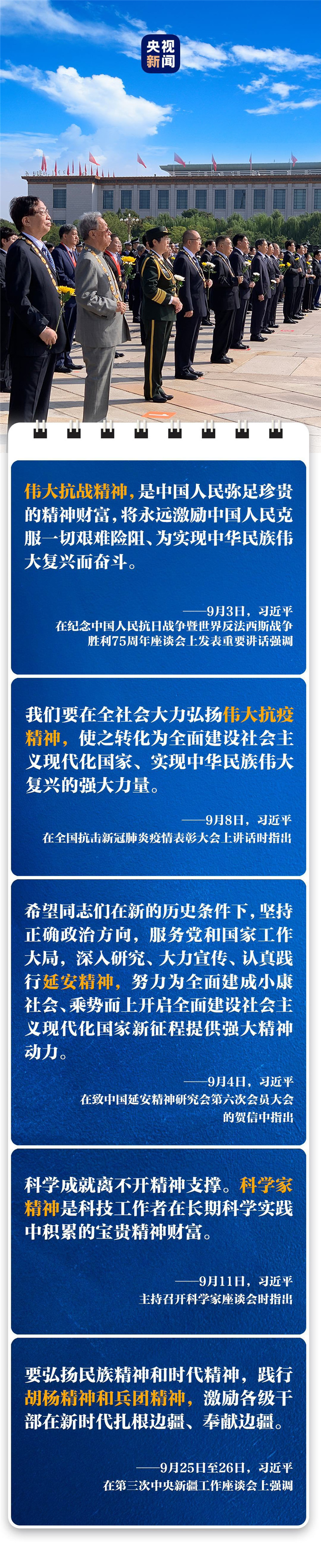 九月,從向抗戰(zhàn)烈士敬獻(xiàn)花籃,到表彰抗疫英雄,再到向人民英雄敬獻(xiàn)花籃,共和國(guó)率14億中華兒女以國(guó)家之名、以民族之心聲,向我們的英雄先烈致敬。
