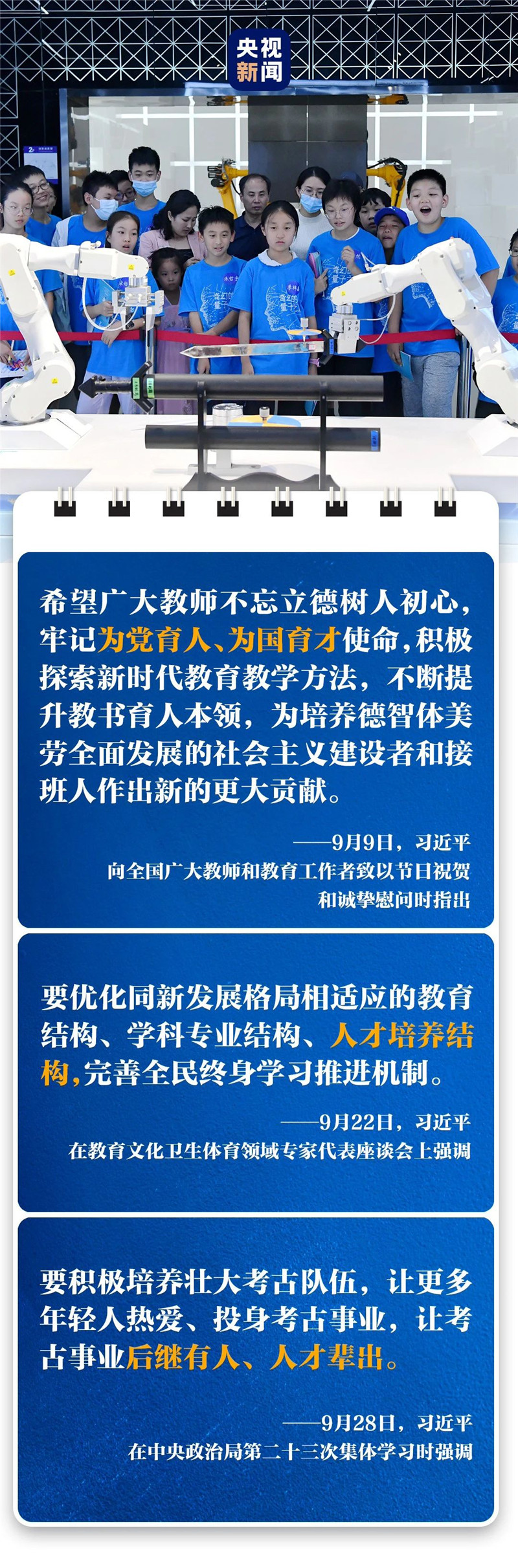 習(xí)近平十分重視教育這一“國(guó)之大計(jì)、黨之大計(jì)”。9月11日,在和科學(xué)家座談時(shí),總書記再次強(qiáng)調(diào),“要把教育擺在更加重要位置”。11天后,在與教育文化衛(wèi)生體育領(lǐng)域?qū)<掖碜剷r(shí),習(xí)近平指出:“我們的基礎(chǔ)教育還是比較扎實(shí)的,都是實(shí)打?qū)嵉?,我們?chuàng)造了那么多奇跡,還是靠我們的教育基礎(chǔ)?!?/p>