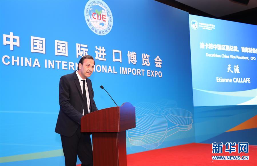 9月27日,第三屆中國國際進口博覽會參展商聯(lián)盟體育產(chǎn)業(yè)專業(yè)委員會成立儀式在國家會展中心(上海)舉行。這是體育產(chǎn)業(yè)專委會會長單位、法國迪卡儂公司中國區(qū)副總裁天涯在成立儀式上致辭。 新華社記者 方喆 攝