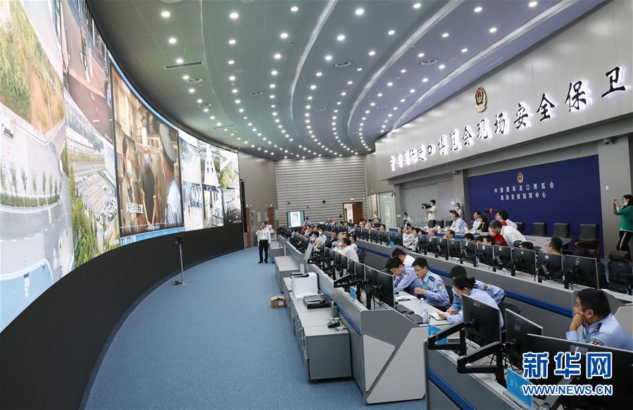 9月28日,第三屆進博會城市服務(wù)保障實景綜合演練在國家會展中心(上海)舉行。這是各參演單位代表在中國國際進口博覽會現(xiàn)場安保指揮中心大廳內(nèi)通過屏幕觀看實景演練。新華社記者 方喆 攝