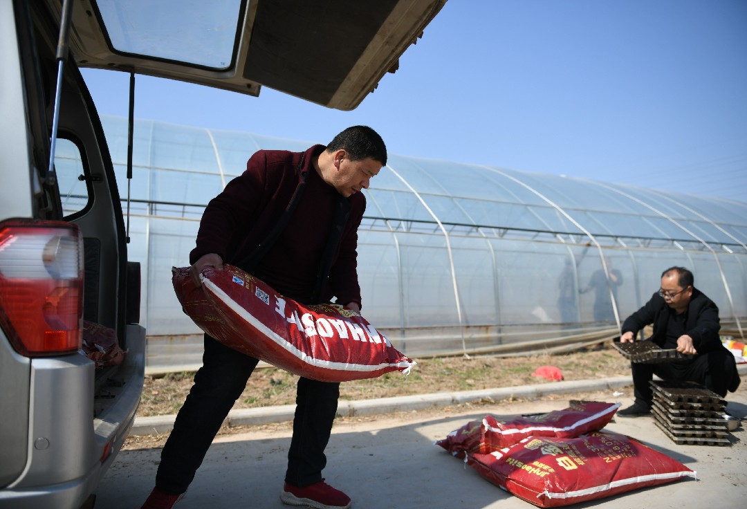 2020年3月4日,陜西蒲城縣供銷聯(lián)社荊姚鎮(zhèn)供銷社的工作人員為蒲城縣聯(lián)瑞農(nóng)業(yè)發(fā)展有限公司配送農(nóng)資。