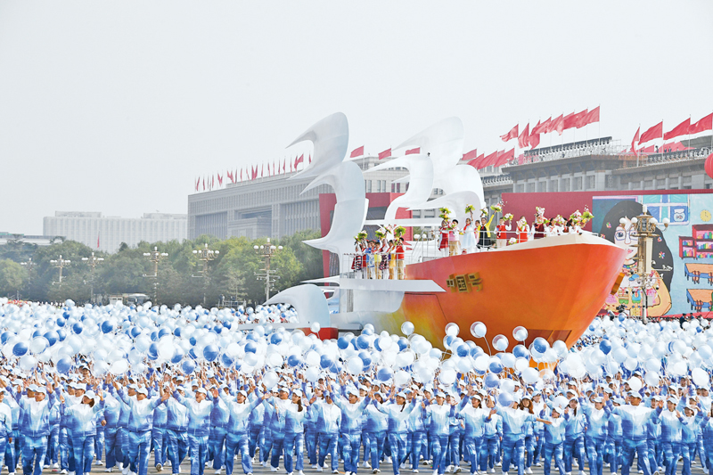 70年來,在中國共產黨堅強領導下,中國人民勇于探索、不斷實踐,成功開辟了中國特色社會主義道路,推動中國特色社會主義進入新時代,中國大踏步趕上了時代,中國人民意氣風發(fā)走在了時代前列!