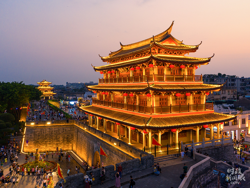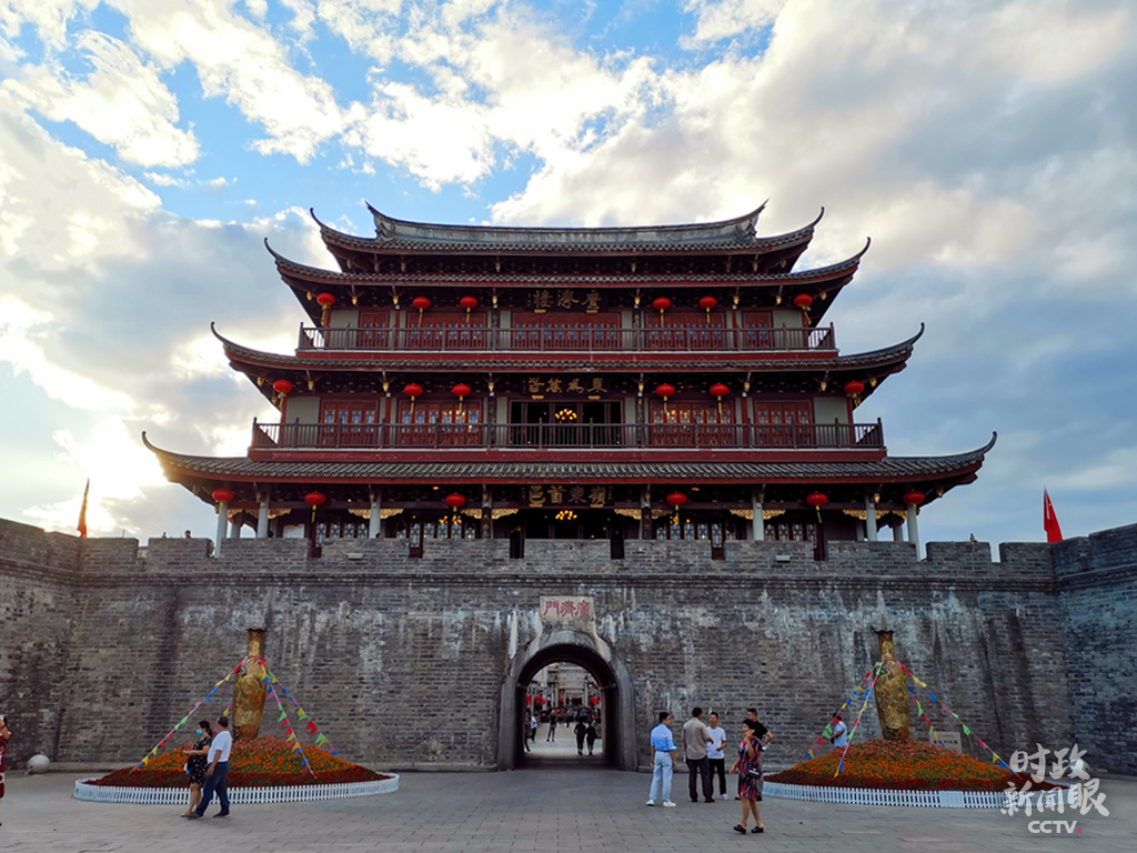 △修復(fù)后的廣濟(jì)門城樓高24.5米,城樓上的“東為萬(wàn)春”和“嶺東首邑”分別由國(guó)際漢學(xué)大師饒宗頤、書(shū)法家劉炳森題寫(xiě)。(總臺(tái)央視記者楊立峰拍攝)
