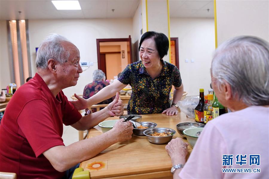 福州市鼓樓區(qū)東街街道軍門社區(qū)老人劉建國(guó)(左)在社區(qū)居家養(yǎng)老服務(wù)照料中心就餐(2019年7月30日攝)。新華社記者 林善傳 攝