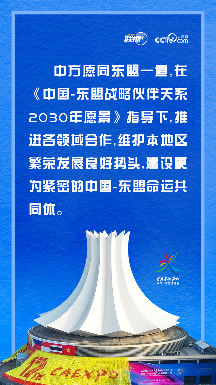 ●中方愿同東盟方攜手努力,暢通貿(mào)易、促進(jìn)投資,相互開(kāi)放市場(chǎng),推動(dòng)雙方產(chǎn)業(yè)鏈、供應(yīng)鏈、價(jià)值鏈深度融合。