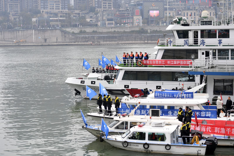 2020年12月31日,執(zhí)法船隊在重慶江北嘴執(zhí)法船舶碼頭整裝待發(fā)。