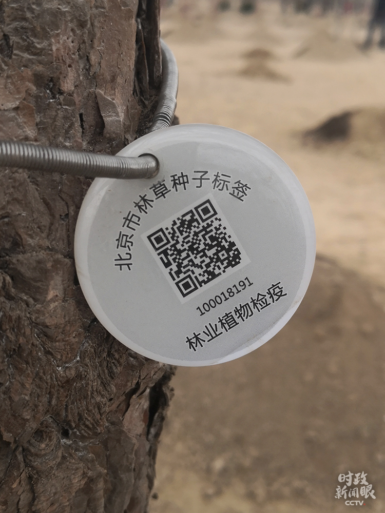 △現(xiàn)場的樹木都配有一個二維碼標(biāo)簽,識別后可看到詳細(xì)信息。(總臺央視記者鐘鋒拍攝)