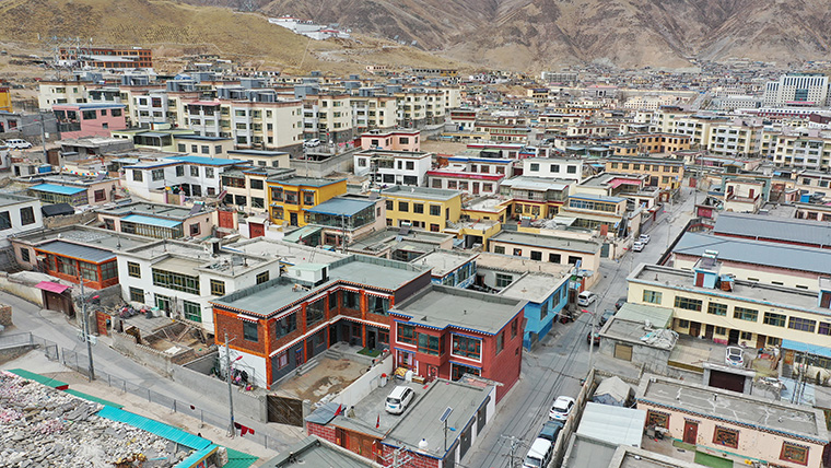 圖為2021年3月10日拍攝的玉樹市一角(地震時(shí)為扎西科臨時(shí)安置點(diǎn))。