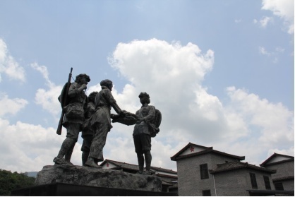 湖南省郴州市汝城縣沙洲村的“半條被子”雕塑。(鄺西曦?cái)z)
