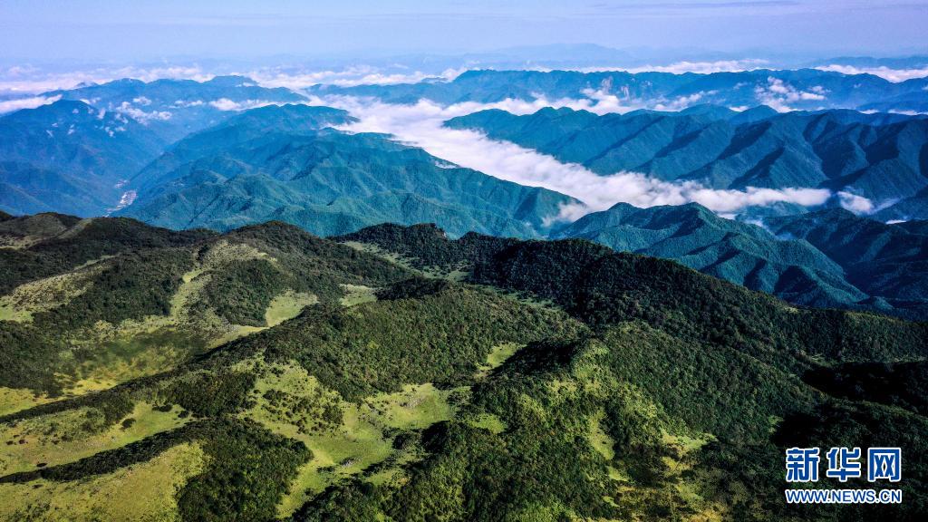 雨后初霽,位于陜西省漢中市留壩縣的紫柏山國家森林公園內(nèi)云霧升騰,宛如畫境(2020年9月17日攝,無人機(jī)照片)。 新華社記者 劉瀟 攝