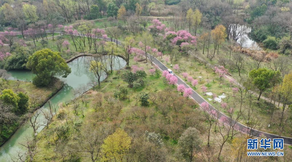 觀光車在浙江杭州西溪濕地內(nèi)行駛(2021年3月2日攝,無人機(jī)照片)。 新華社記者 翁忻旸 攝