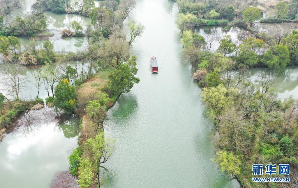 浙江杭州西溪濕地水道(2021年3月2日攝,無人機(jī)照片)。 新華社記者 翁忻旸 攝