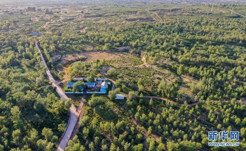 這是2020年9月7日在內(nèi)蒙古鄂爾多斯市烏審旗毛烏素沙地拍攝的一處治沙站(無人機(jī)照片)。 新華社記者 連振 攝