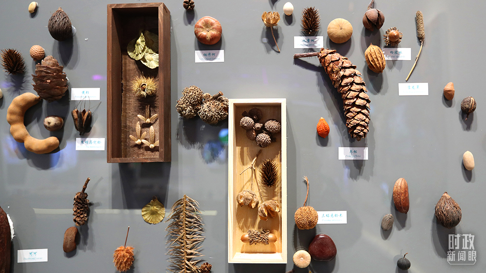 △會展中心,云南生物多樣性保護(hù)實踐與成果展展廳的種子墻。(圖/視覺中國)