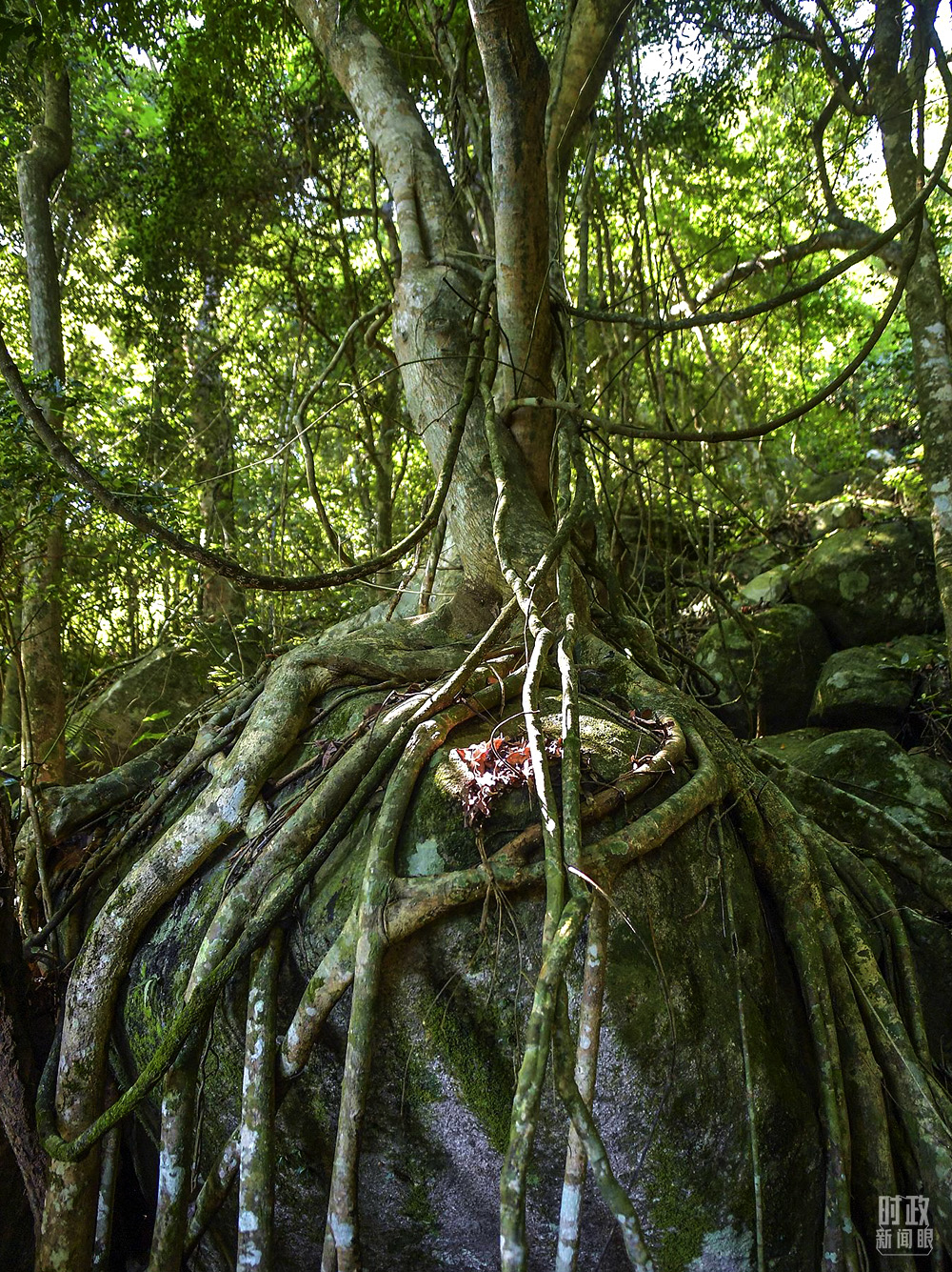 △海南霸王嶺自然保護(hù)區(qū),熱帶雨林中的“根抱石”現(xiàn)象。(圖/視覺中國)