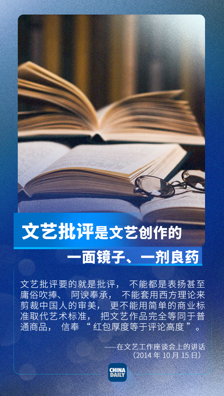 2014年10月15日,習(xí)近平總書(shū)記主持召開(kāi)文藝工作座談會(huì)強(qiáng)調(diào),堅(jiān)持以人民為中心的創(chuàng)作導(dǎo)向,創(chuàng)作更多無(wú)愧于時(shí)代的優(yōu)秀作品。關(guān)于文藝工作,習(xí)近平總書(shū)記有哪些重要論述?中國(guó)日?qǐng)?bào)網(wǎng)帶你一起學(xué)習(xí)。